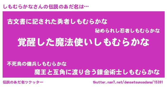 | ヒーロー風カッコイイあだ名 | 『炎刃騎士シモ』『最強戦士シモムラカナ』 |