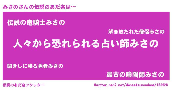 | ヒーロー風カッコイイあだ名 | 『正義の使者みさの』『スーパーミサノ』 |