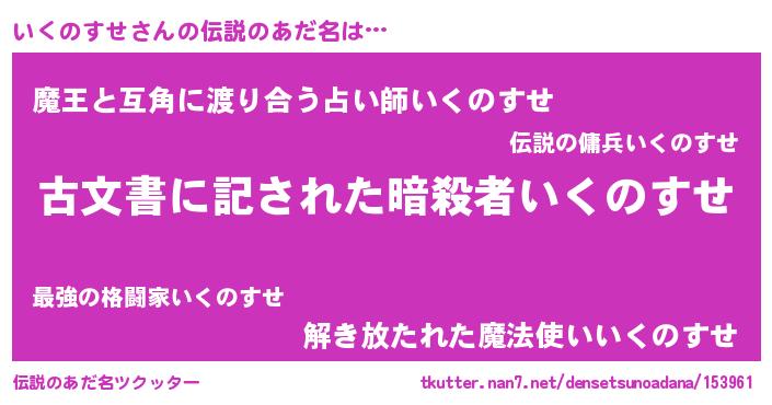 | 意味不明あだ名 | 『住所不定無職いくのすせ(53歳)』 |