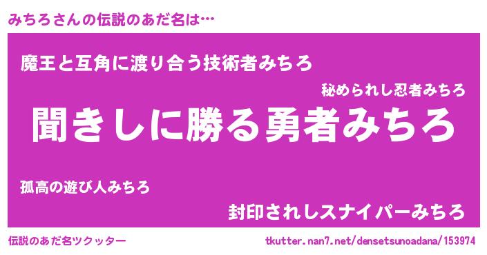 | ヘコむあだ名 | 『みちろ(遠い目)』『みちにー』 |