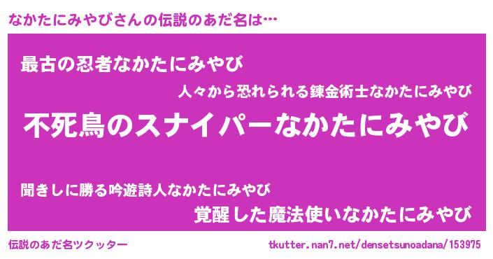| 胡散臭い通販商品みたいなあだ名 | 『モテモテ間違いなし霊験あらたかなお札…その名も「なかたにみやび」』 |
