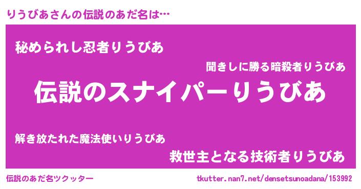 | 意味不明あだ名 | 『ペロリンりうびあ』『自称りうびあ』 |