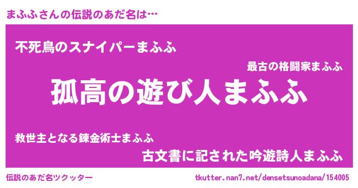 | ヒーロー風カッコイイあだ名 | 『暗黒騎士マフ』『サイバー戦士マフフ』 |