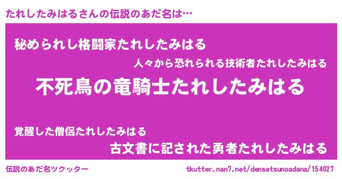 | 意味不明あだ名 | 『自称たれしたみはる』 |