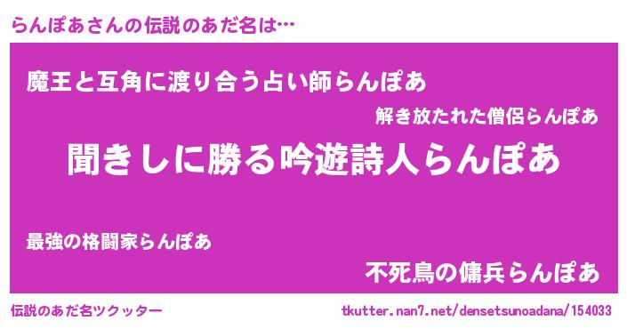 | ヒーロー風カッコイイあだ名 | 『ネオランポア』『愛の使者らんぽあ』 |