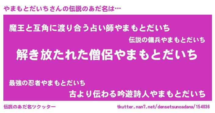 | 肩書あだ名 | 『やまもとだいち大尉』 |