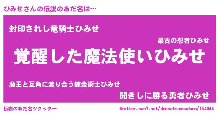 | ヒーロー風カッコイイあだ名 | 『仮面ヒミダー』『暗黒騎士ヒミ』 |