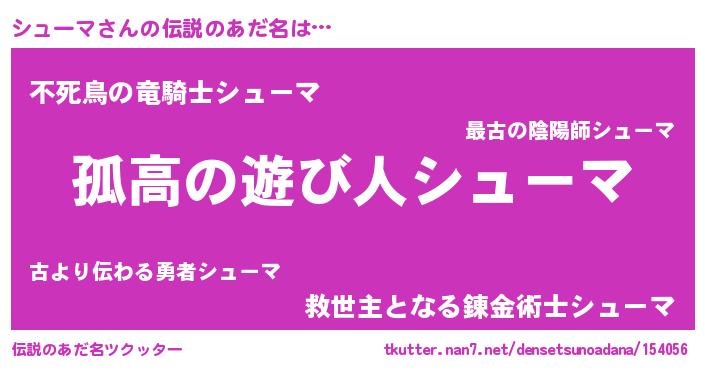 | 胡散臭い通販商品みたいなあだ名 | 『信頼と実績のペンダント…その名も「シューマ」』 |