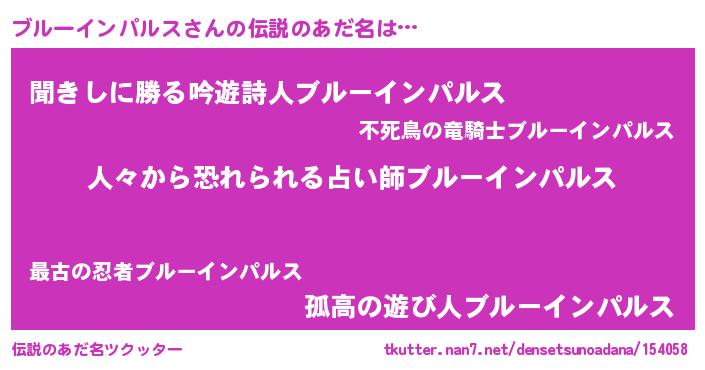 | ヘコむあだ名 | 『ブルーインパルス(爆)』『ブルお』 |