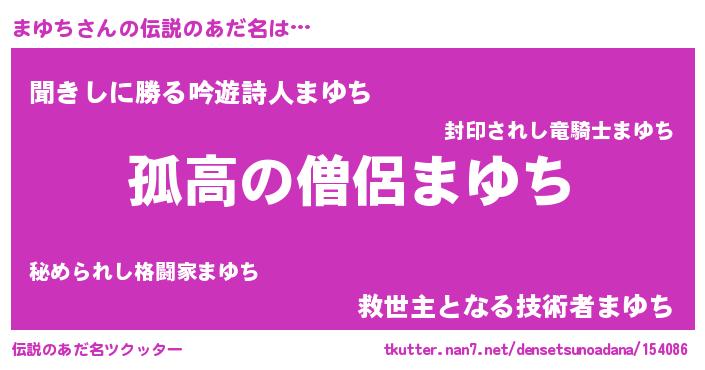 | ヒーロー風カッコイイあだ名 | 『暗黒騎士マユ』『仮面マユダー』 |