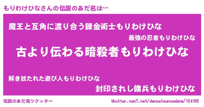 | ヒーロー風カッコイイあだ名 | 『ネオモリワケヒナ』『仮面モリダー』 |