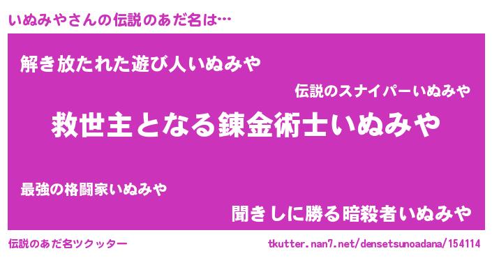 | 意味不明あだ名 | 『住所不定無職いぬみや(77歳)』 |