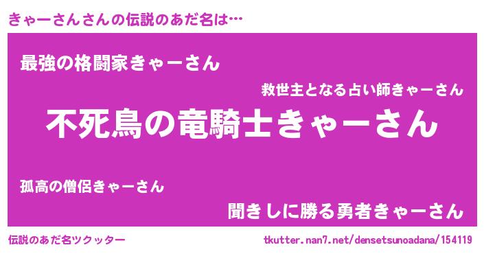 | 女子向けラノベタイトル風あだ名 | 『きゃーさんの玉の輿計画!』 |