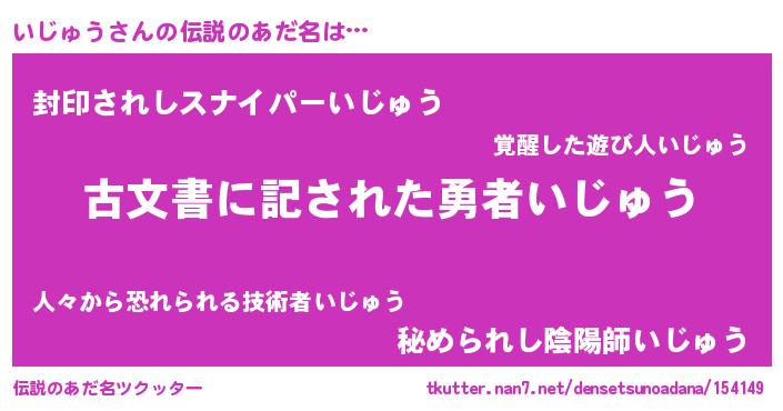 | ヒーロー風カッコイイあだ名 | 『仮面イジダー』『究極戦士イジュウ』 |