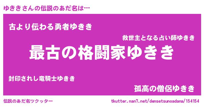 | ヒーロー風カッコイイあだ名 | 『ウルトラゆききマン』『ネオユキキ』 |