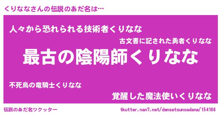 | 肩書あだ名 | 『くりなな中将』『くりなな総理大臣』 |