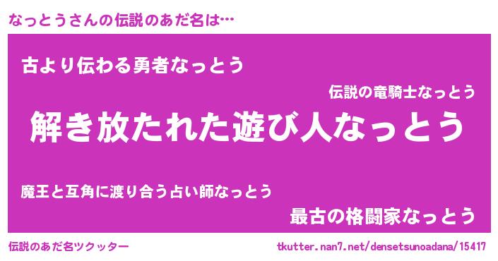 | ヒーロー風カッコイイあだ名 | 『幻影騎士ナッ』『ネオナットウ』 |