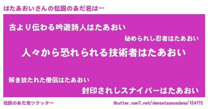 | ヒーロー風カッコイイあだ名 | 『正義の使者はたあおい』『仮面ハタダー』 |