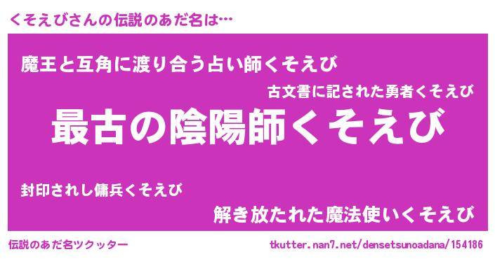 | ヒーロー風カッコイイあだ名 | 『ウルトラくそえびマン』『天弓騎士クソ』 |