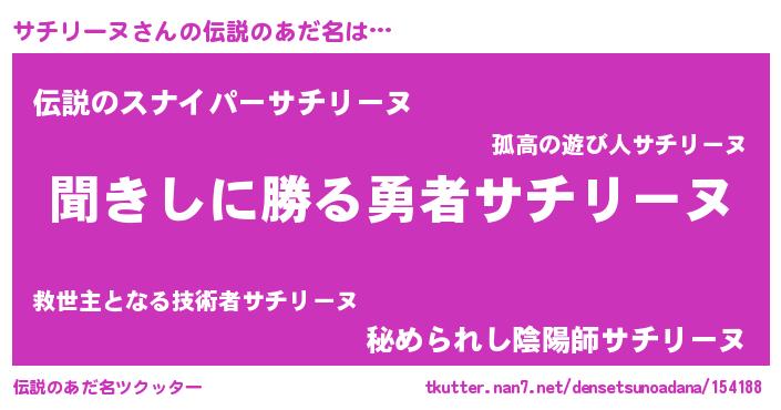 | 男性向けラノベタイトル風あだ名 | 『緋弾のサチリーヌ』 |
