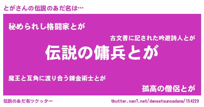 | ヒーロー風カッコイイあだ名 | 『スーパートガ』『仮面トガダー』 |