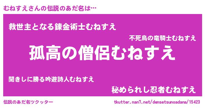 | 意味不明あだ名 | 『自称むねすえ』『しいたけ科むねすえ属』 |