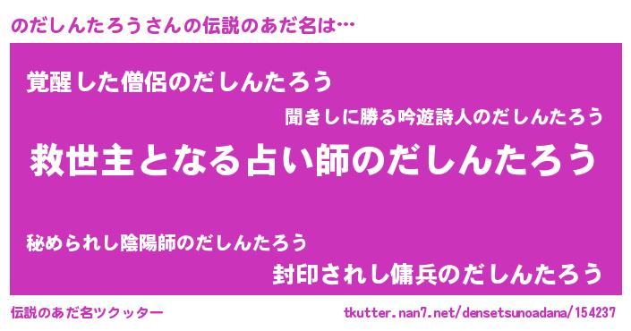 | 男性向けラノベタイトル風あだ名 | 『ノーゲーム・ノーノダシンタロウ』 |