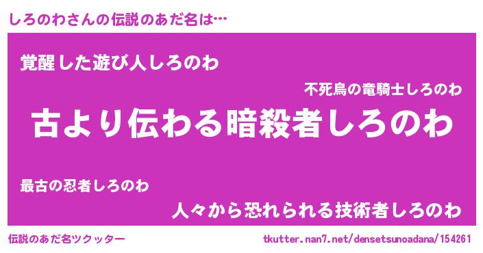 | 男性向けラノベタイトル風あだ名 | 『しろのわという概念が存在しない退屈な世界 』 |