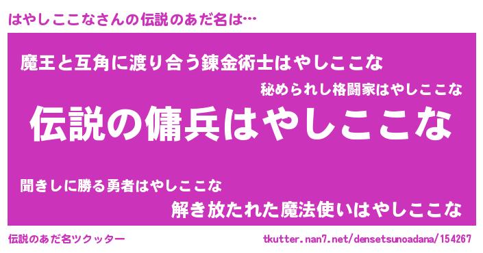 | 胡散臭い通販商品みたいなあだ名 | 『必ず成功する水晶球…その名も「はやしここな」』 |