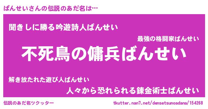 | 男性向けラノベタイトル風あだ名 | 『バンセイアートオンライン』 |