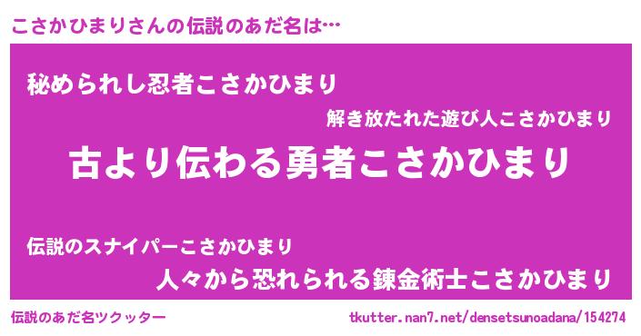 | 意味不明あだ名 | 『永久保存こさかひまり』 |