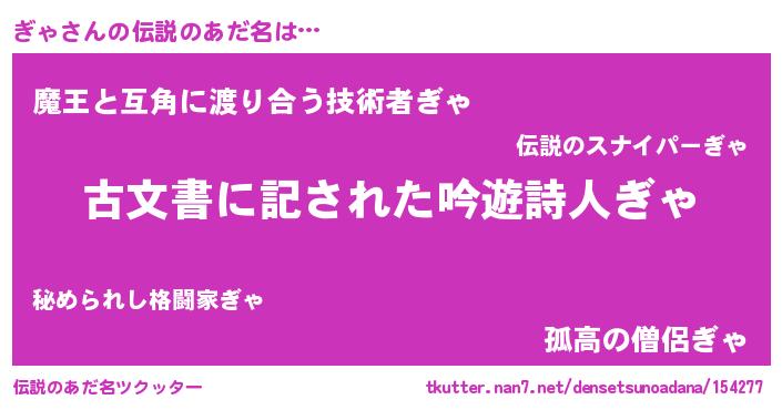 | ヘコむあだ名 | 『ぎゃ(小並感)』『ぎゃを』 |