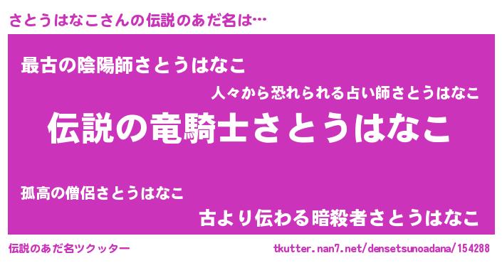 | 胡散臭い通販商品みたいなあだ名 | 『必ず成功するブレスレット…その名も「さとうはなこ」』 |