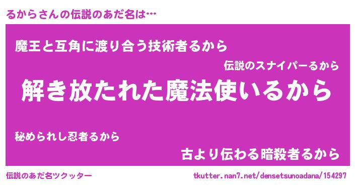 | ヘコむあだ名 | 『るか太郎』『るから(笑)』 |