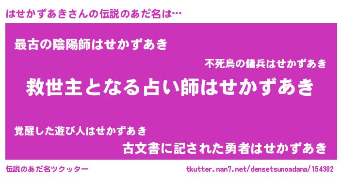 | ヒーロー風カッコイイあだ名 | 『慈愛の使者はせかずあき』 |