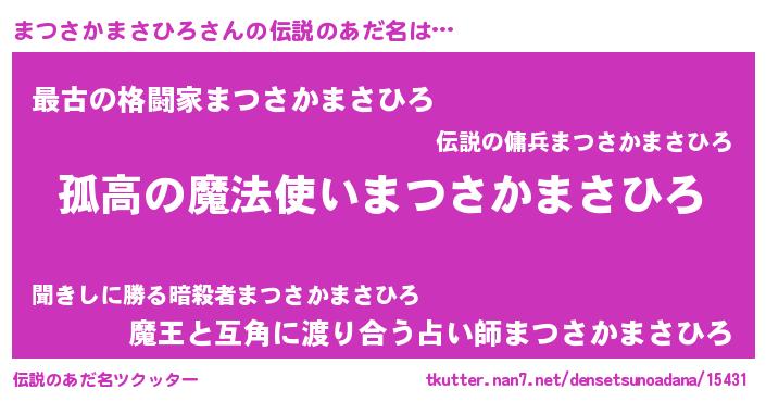 | 意味不明あだ名 | 『自称まつさかまさひろ』 |