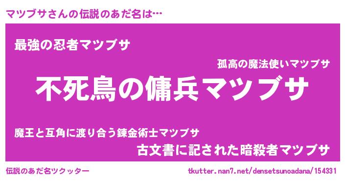 | ヒーロー風カッコイイあだ名 | 『スーパーマツブサ』『最強戦士マツブサ』 |