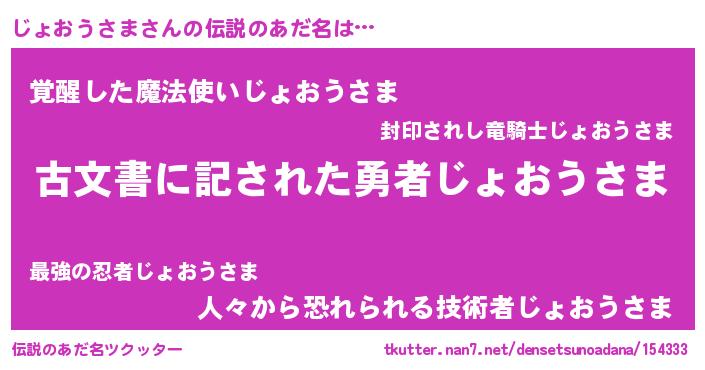 | 意味不明あだ名 | 『永久保存じょおうさま』 |
