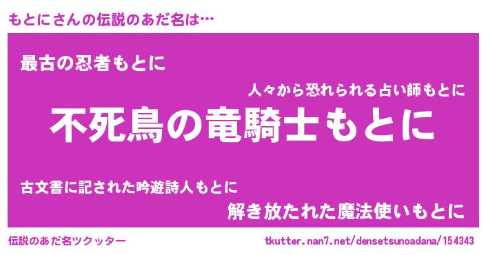 | 男性向けラノベタイトル風あだ名 | 『魔弾の王ともとに』『緋弾のモトニ』 |