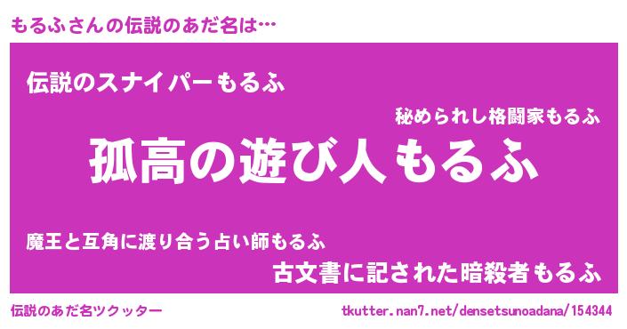 | 意味不明あだ名 | 『とにかく怪しいもるふ』『自称もるふ』 |