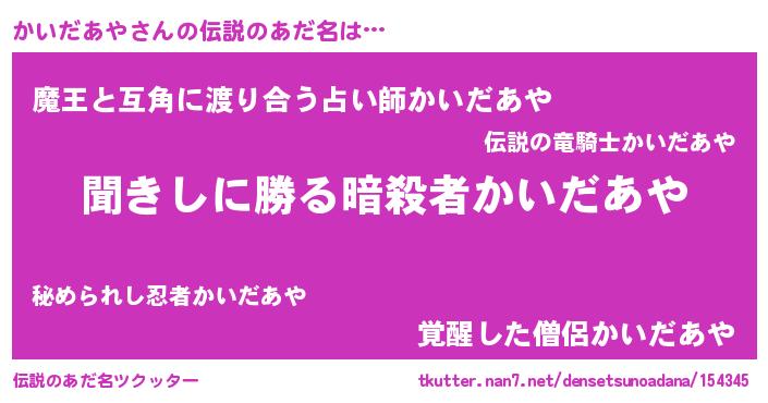 | ヘコむあだ名 | 『かいだあや(苦笑)』『かいっぺ』 |
