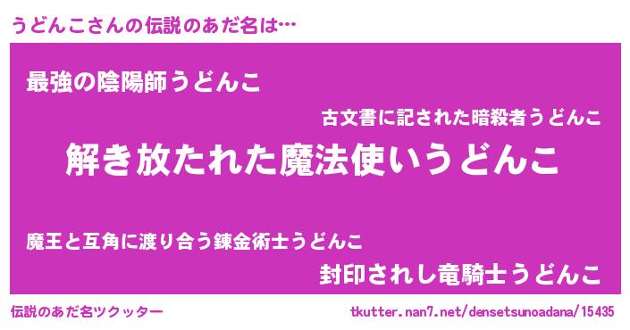 | 男性向けラノベタイトル風あだ名 | 『Re:うどんこから始める異世界生活』 |