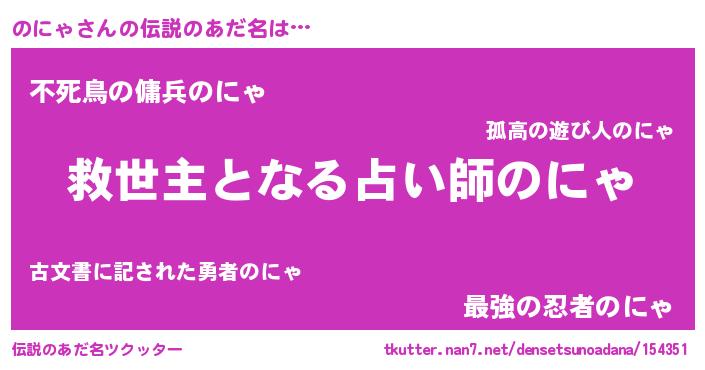 | 男性向けラノベタイトル風あだ名 | 『ノーゲーム・ノーノニャ』 |