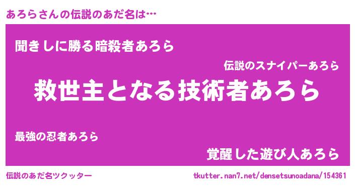 | 意味不明あだ名 | 『眠気覚ましガムあろら味』『自称あろら』 |