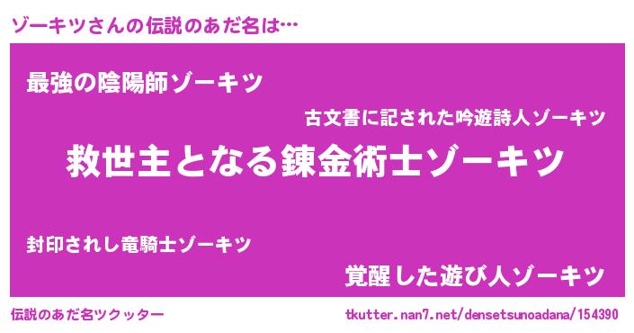 | ヒーロー風カッコイイあだ名 | 『慈愛の使者ゾーキツ』『幻影騎士ゾー』 |