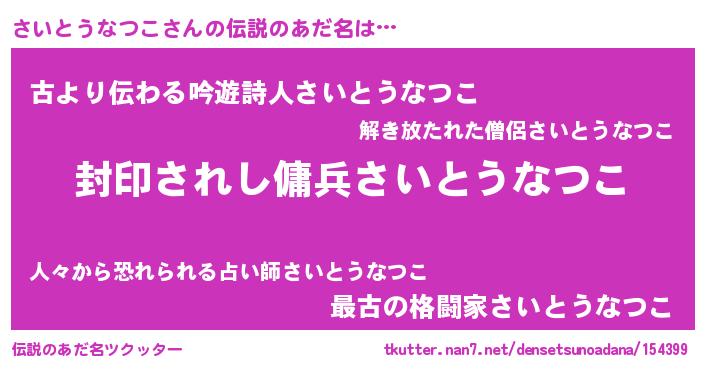 | 意味不明あだ名 | 『自称さいとうなつこ』 |