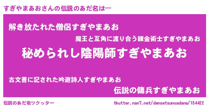 | ファンタジー風あだ名 | 『エターナルスギヤマアオー』 |