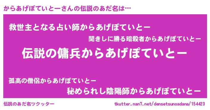 | 意味不明あだ名 | 『自称からあげぽていとー』 |