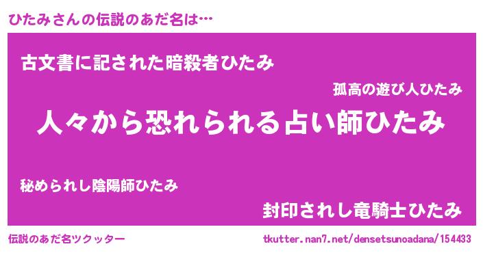 | 欧米人風あだ名 | 『アンジェラ・ひたみ』『ダニエルひたみ』 |