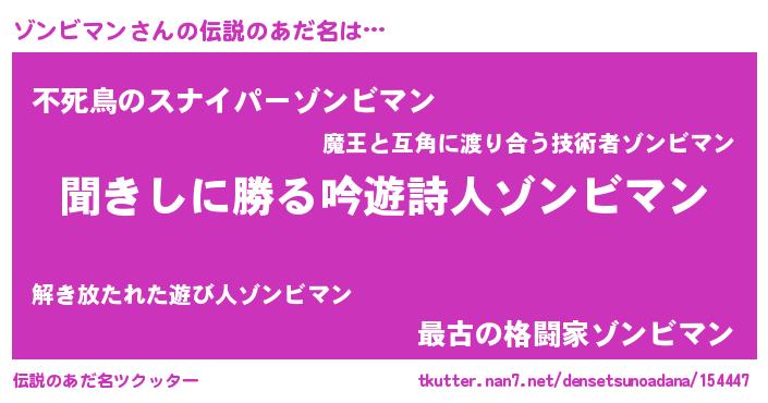 | 意味不明あだ名 | 『永久保存ゾンビマン』 |